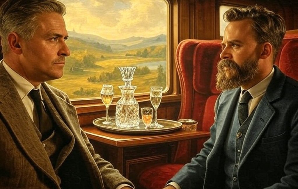 Der Zug rattert durch eine graue, endlose Landschaft, ein Symbol für die moderne Welt, in der alles gleich aussieht und doch nichts Bestand hat.