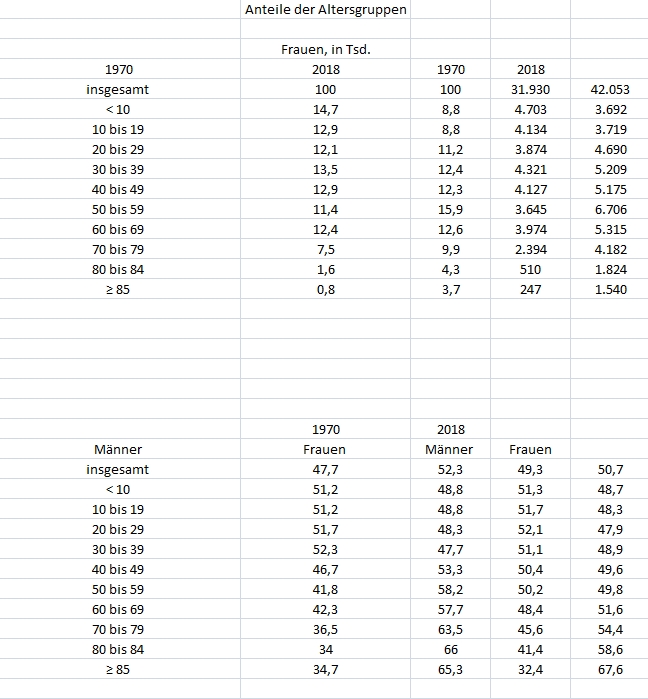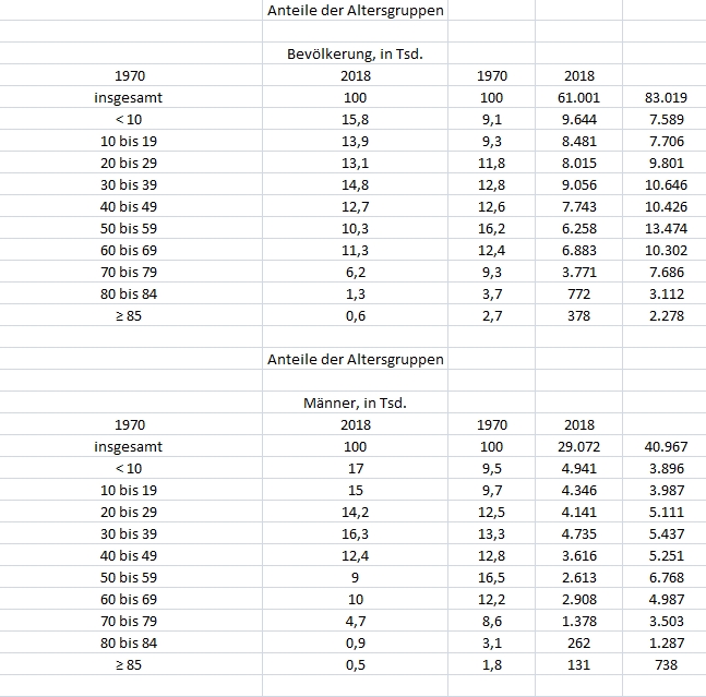 Gleichzeitig stieg der Anteil der 67-Jährigen und Älteren an der Bevölkerung zwischen 1970 und 2018 von 11,1 auf 19,2 Prozent.