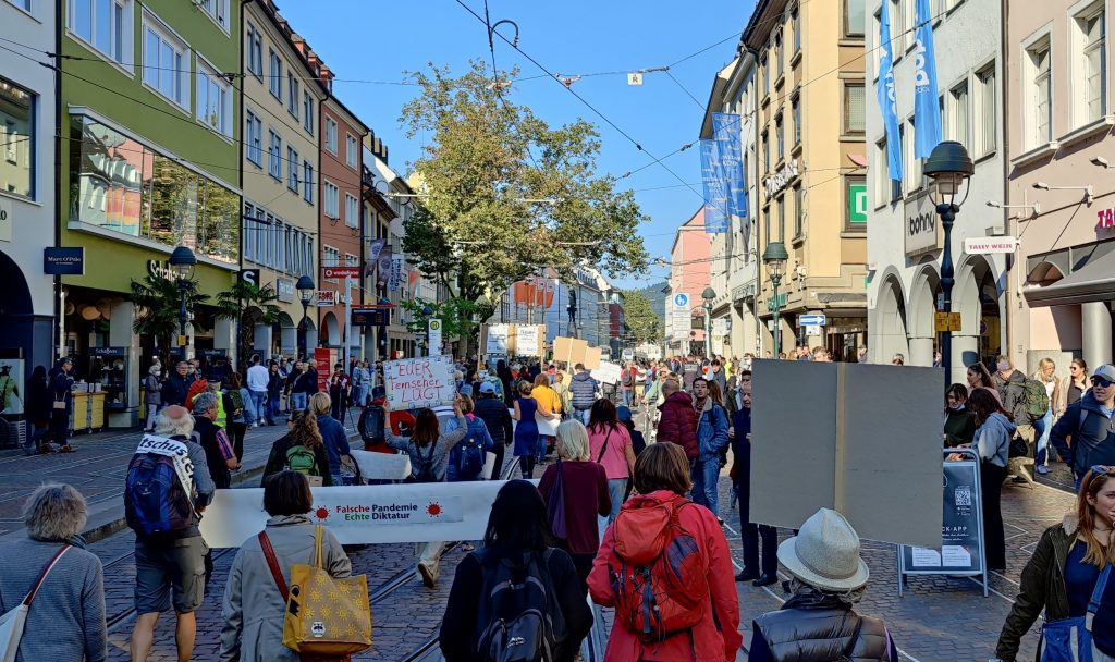 Während in Basel mehrere tausend Menschen gegen die Coronamaßnahmen und Impfzwang des Staates demonstrierte, fanden sich in Freiburg am Karlsplatz ca. 200 Teilnehmer des Aufzugs zusammen.