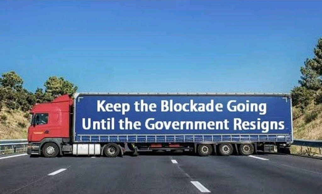Die Strassen werden von grossen Baufahrzeugen und LKWs so lange blockiert, bis die Regierung zurücktritt.