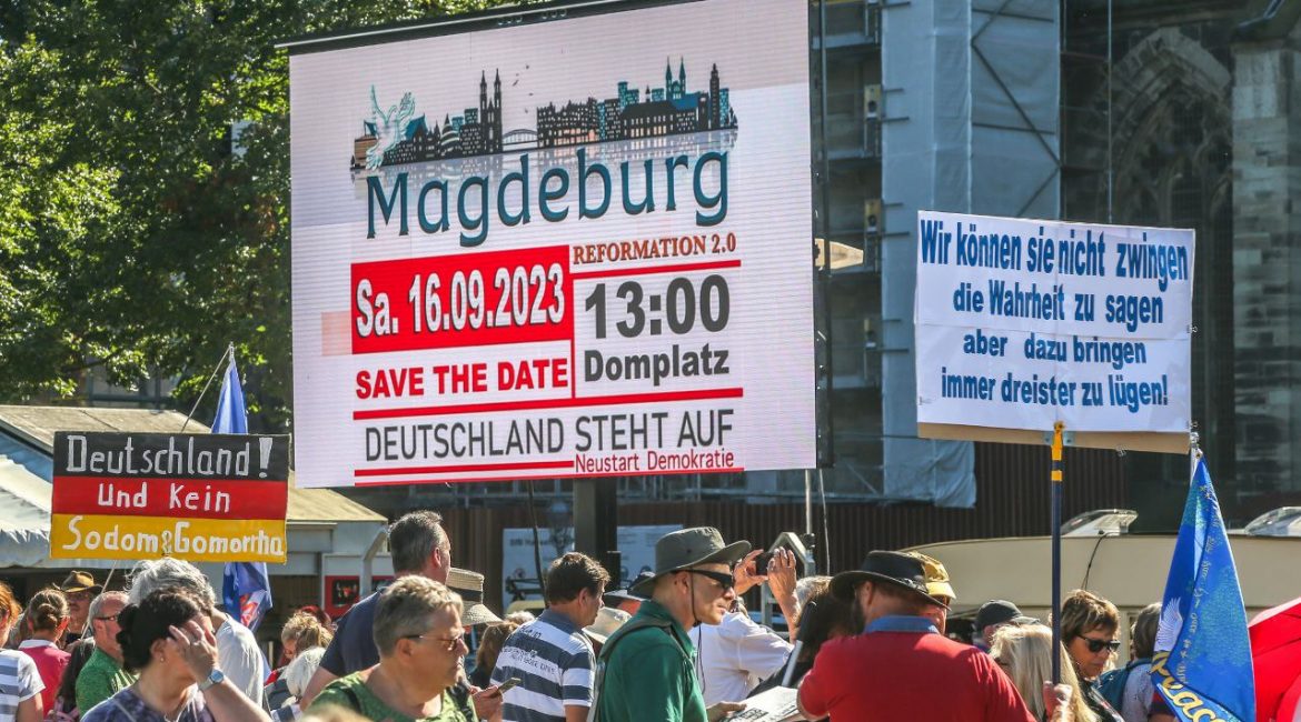 Am 16. September fand auf dem Magdeburger Domplatz eine Großdemonstration unter dem Motto „Deutschland steht auf“ statt.