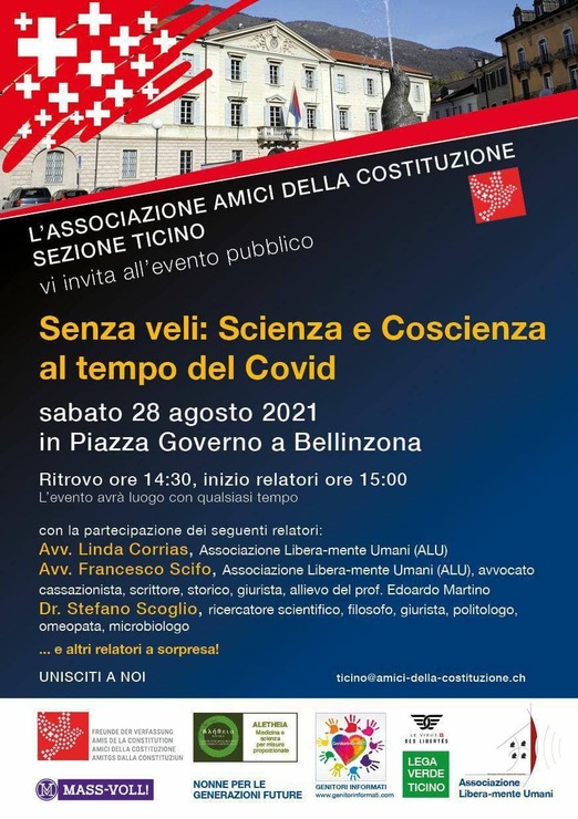 Auch soziale Distanzierung soll die neue Solidarität sein. Wahre Solidarität könnt ihr hingegen auch zeigen, indem ihr am 28. August einen Ausflug in die Sonnenstube macht. Genauer, nach Bellinzona. Dort findet nächsten Samstag auf der Piazza Governo (Regierungsplatz) ab 14:30 Uhr eine bewilligte Veranstaltung statt, organisiert von der Tessiner Sektion der Freunde der Verfassung.