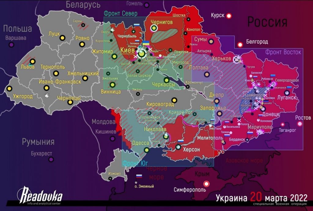 Karte der militärischen Operationen in der Ukraine für den 20. März