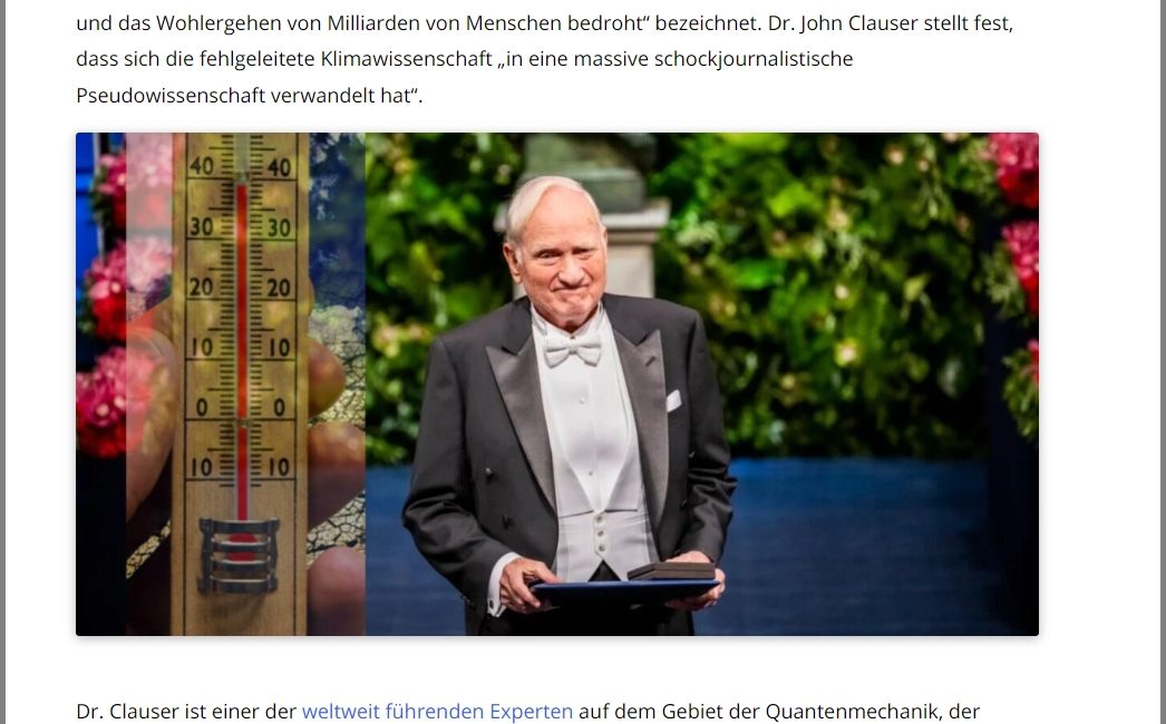 Dr. John Clauser stellt fest, dass sich die fehlgeleitete Klimawissenschaft „in eine massive schockjournalistische Pseudowissenschaft verwandelt hat“.