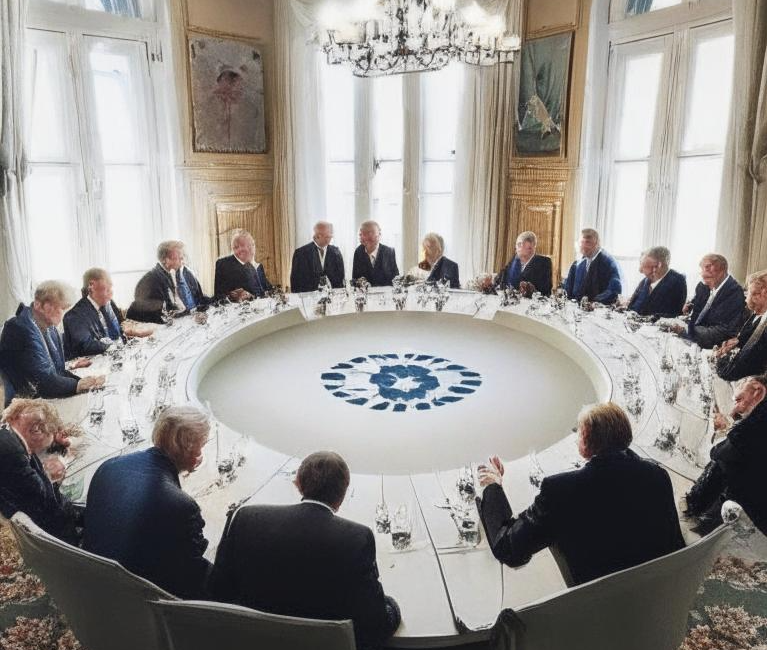 m.e. ist das ein -” schmierentheater,” – denn, wie kann diese “elitäre runde,” russland vom verhandlungstisch – ausschließen ? und wer ist denn eigentlich für diesen krieg – mit-verantwortlich ? dieser silensky, das “rumelstielzchen der ukraine,” – opfert – m.e. – sinnlos seine landsleute, anstatt direkte friedensgespräche zu suchen ! hier verweise ich u.a. auf den beitrag, video – youtube – dialog statt waffen, 2. teil, letztes kapitel, wo ein prof. mit 10 artikeln sich angela merkel widmet – hin ! das hier ähnelt dem vorspiel zum sog. “versailler vertrag v. 28. juni 1918, als – uns – die alleinverantwortung für den 1. weltkrieg – aufoktruiert – wurde ! dieser, m.e. – widerrechtliche vertrag, – hat uns bis heute 50 billionen gekostet hat, obwohl wir – nicht für diesen 1. wk und den sog. 2. wk – verantwortlich – sind ! der “vertrag” – wurde uns – m.e. – abgepresst ! diese gelder gehören dem deutschen volk ! hierzu verweise ich u.a. auf die benjamin freedman – rede im willard hotel 1961, bei youtube, sowie den beitrag vom ehem. generalmajor der b w. gerd schulze – rhonhof, der krieg, der viele väter hatte! alles eine lüge ! die echten kriegsursachen von 1939 ! ( buch + video) bei youtube ! und warum wurde nicht seitens – der politverantwortlichen der brd – für uns der friedensvertrag zum 1. wk – sowie die cancelung der feindstaatenklausel nr. 1 – bei der un – eingefordert ? wir sind die – “welt-zahlmeister” – der gesamten völkergemeinschaft ! und keine stimme der brd-verantwortlichen – regt sich; und – warum – nicht ! ? !