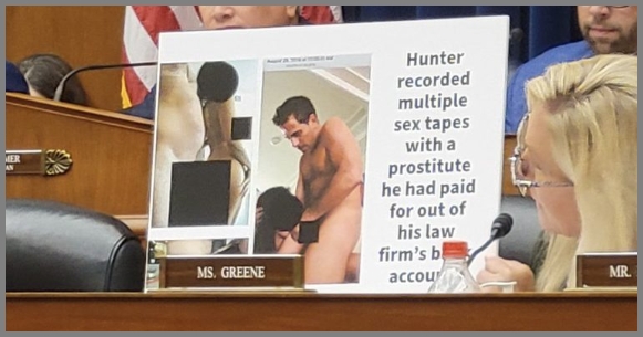 Die Republikanerin Marjorie Taylor Greene (49) präsentierte diese Bilder während der Befragung eines Hunter-Biden-Whistleblowers im Ausschuss des US-Kongresses.