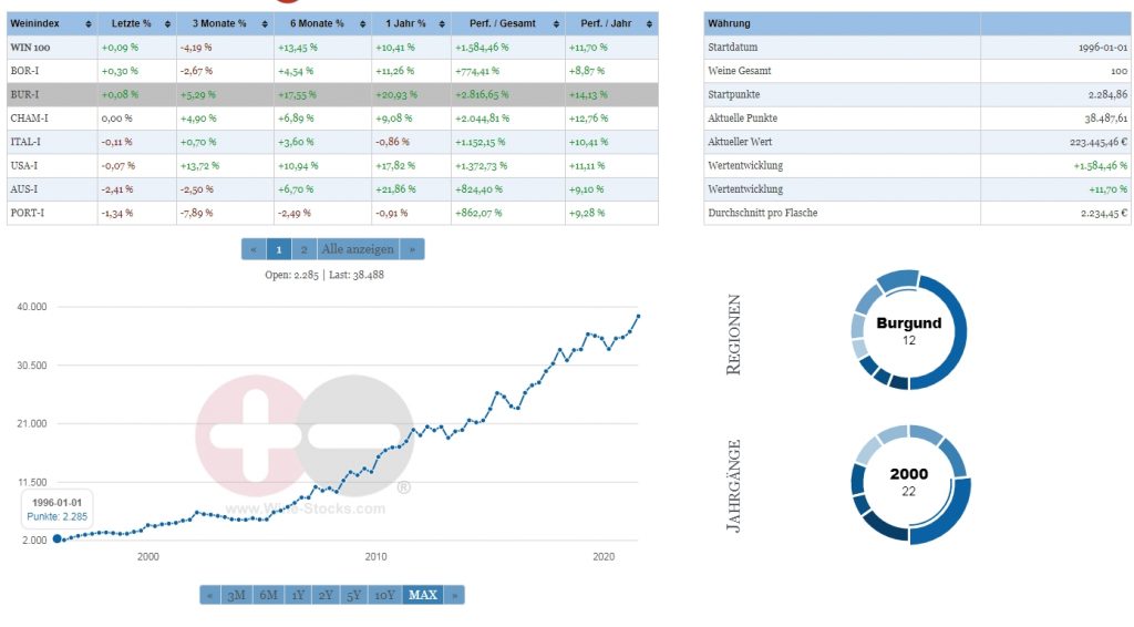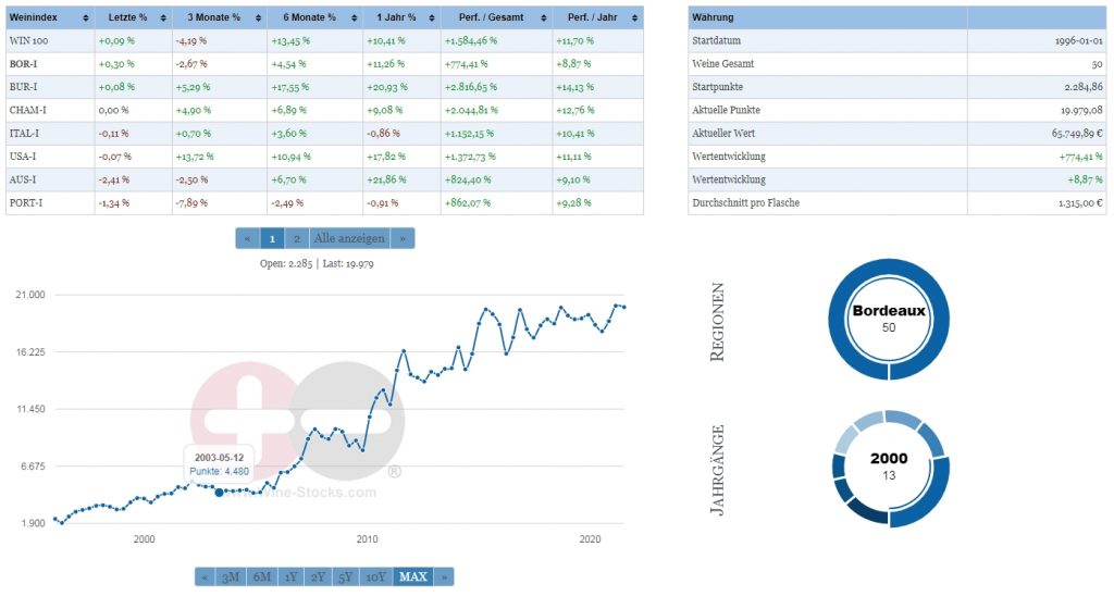 Wir zeigen ihnen hier einige Beispiele für Wertsteigerung und einige Weinindizes
